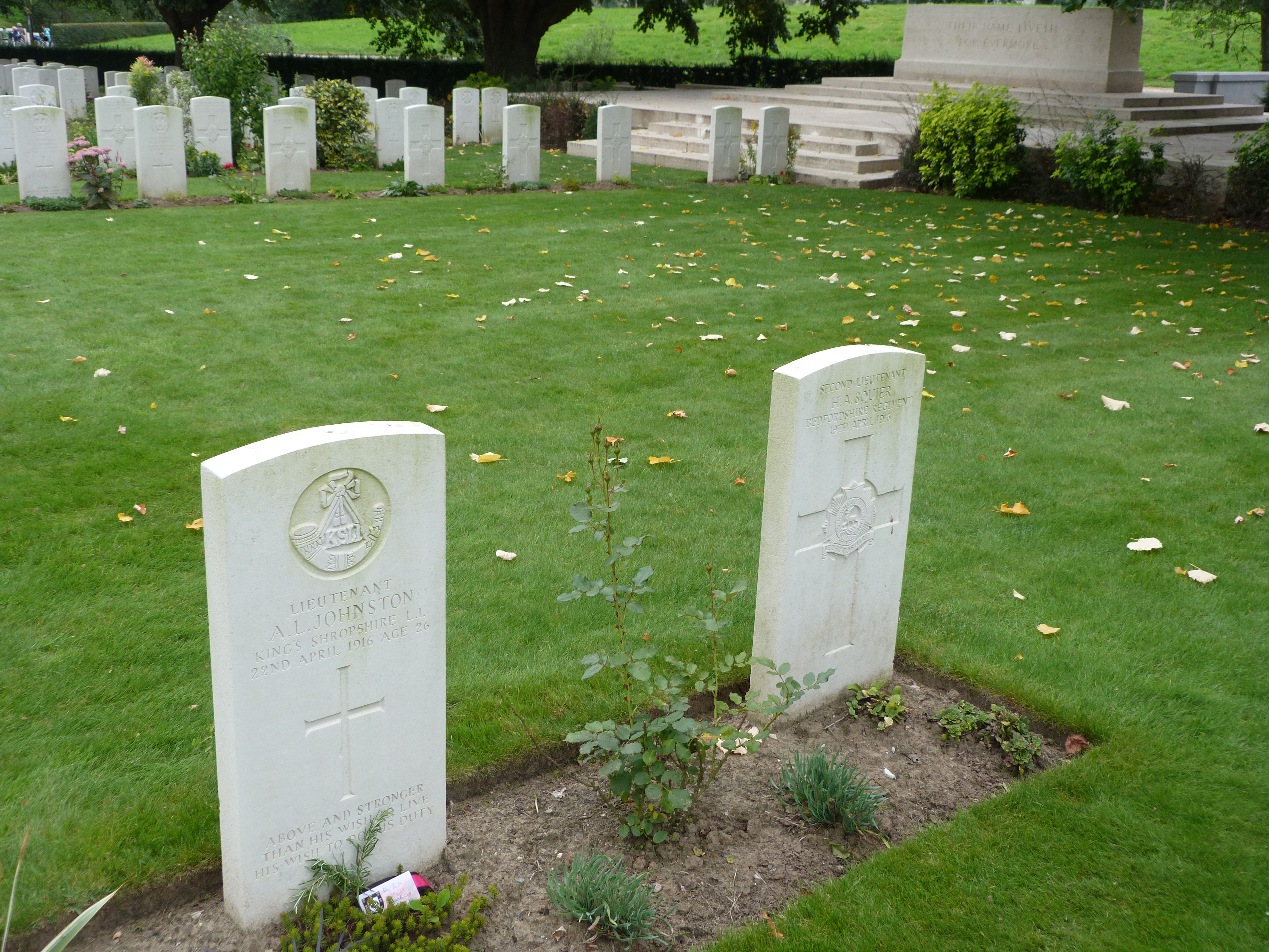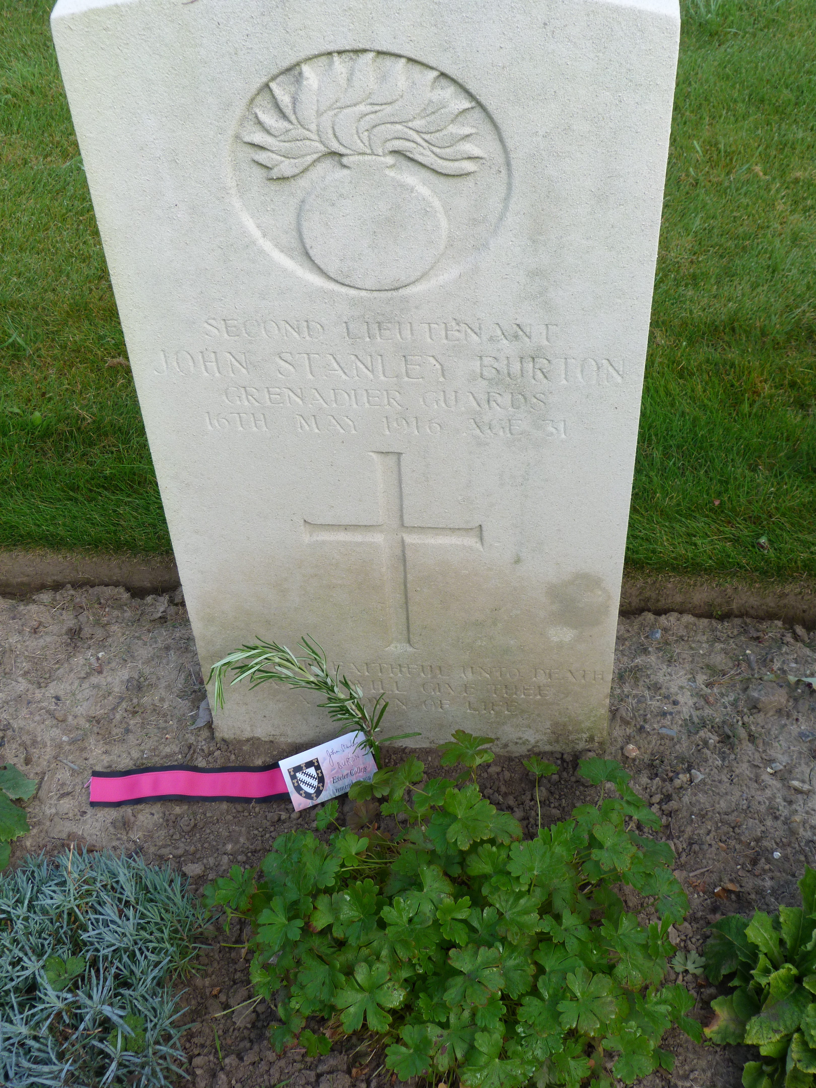Marston is buried in the Commonwealth Grave, which lies behind the communal grave yard and adjacent to the French soldiers’ graves. Interestingly before one reaches them there is a small plot of graves of French soldiers erected by their families, following the traditions of their homeland, with various different monuments. There was much debate in England as to whether individuality could be expressed on the gravestones, but eventually it was decided that there should be a common model, with space for personalized inscriptions at the foot. Could it be that this communal identity, per Durkheim, is why we as a nation still visit and honour the fallen because this common fate has been central in shaping the change in British social life – general buried beside the private solider. Felix Marston matriculated in 1914 and entered military service on 15 August 1914 – it was possible to come up at various points throughout the year. He was a second lieutenant in the Royal Warwickshire Regt, and died aged 20 on 24 July 1916, from wounds sustained from the first battle of Albert.