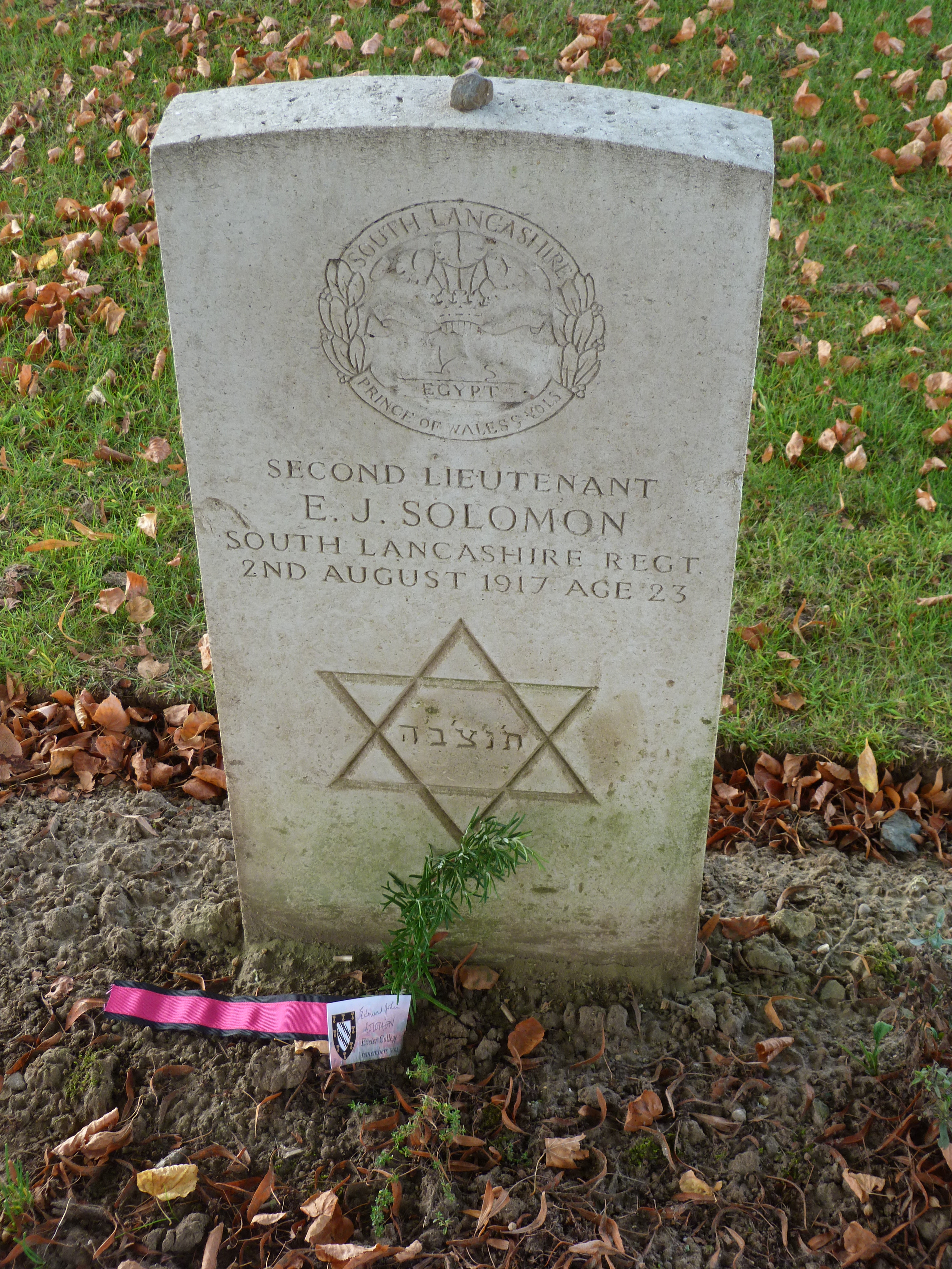 Solomon came up in 1912, from London. He joined the South Lancashire Regiment after signing up on Boxing Day 1914. He is one of two Jewish students whom we visited today; the Star of David replaces the Cross on the tombstone. Each of the graveyards we visited today lie within a mile or two of the Ypres ring road: the intensity of the concentration of these cemeteries is astounding; the land here really must be blood drenched. Edmund was 23 when he died on 2 August 1917.