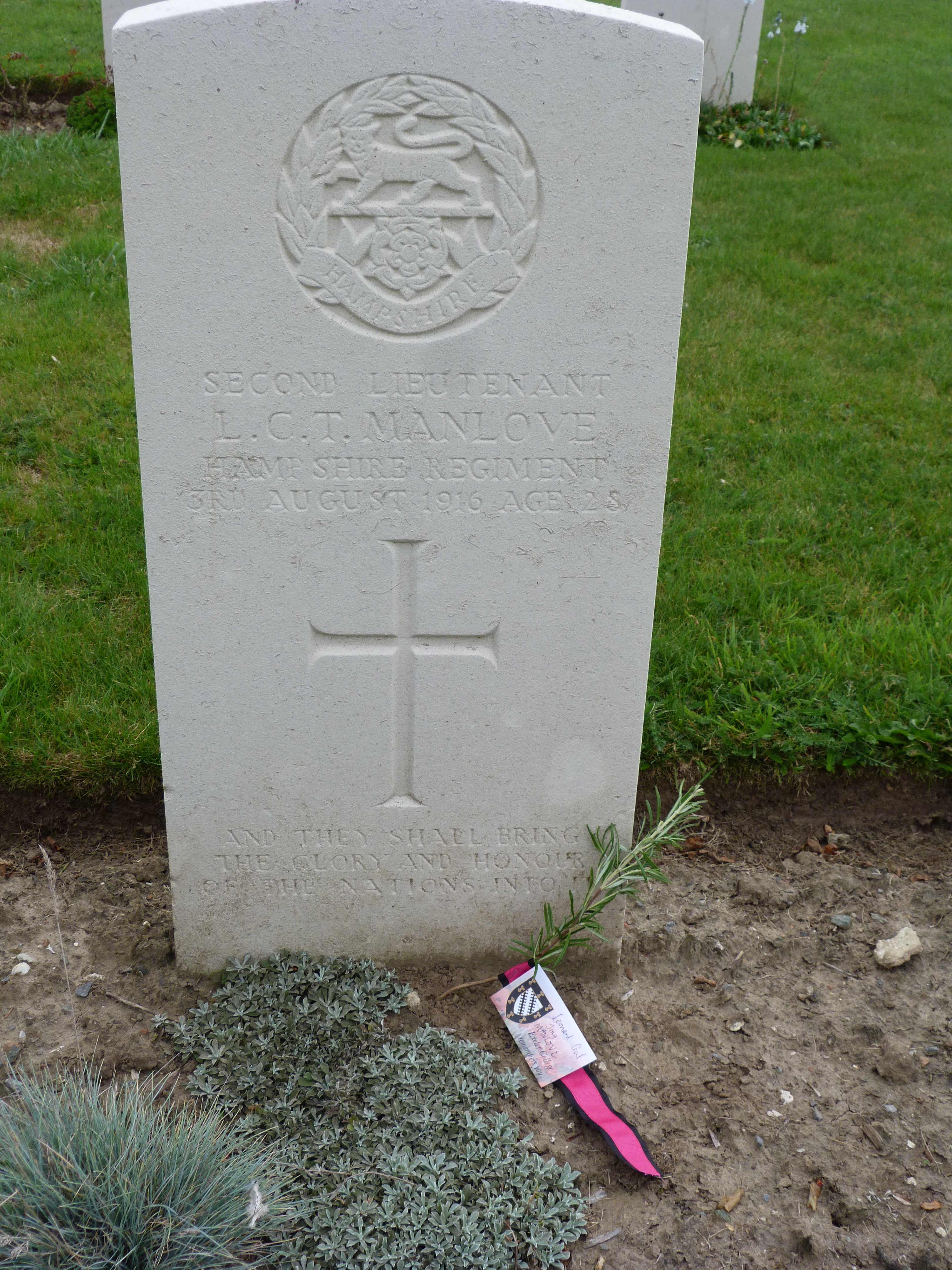 Potijze Wood Cemetery is one of three situated in the grounds of a former chateau; the others being the Lawn and Grounds Cemetery. This country house lay sufficiently far behind the front to be used as a dressing station, where the crudest of operations and first aid would take place. Medics had indelible pens to write on the foreheads of the wounded whether they had any medication or what was wrong with them; although medical papers had been prepared in England and shipped out to be used, the sheer volume and conditions in which the medics had to work meant it was more efficient to have the notes physically on the patients. Manlove was 28 when he died. He matriculated in 1906 and was from Paignton. He died on 3 August 1916, almost ten years after he came up to Exeter. I wonder whether, when preparing to move to Oxford he thought that his life would end as it did?