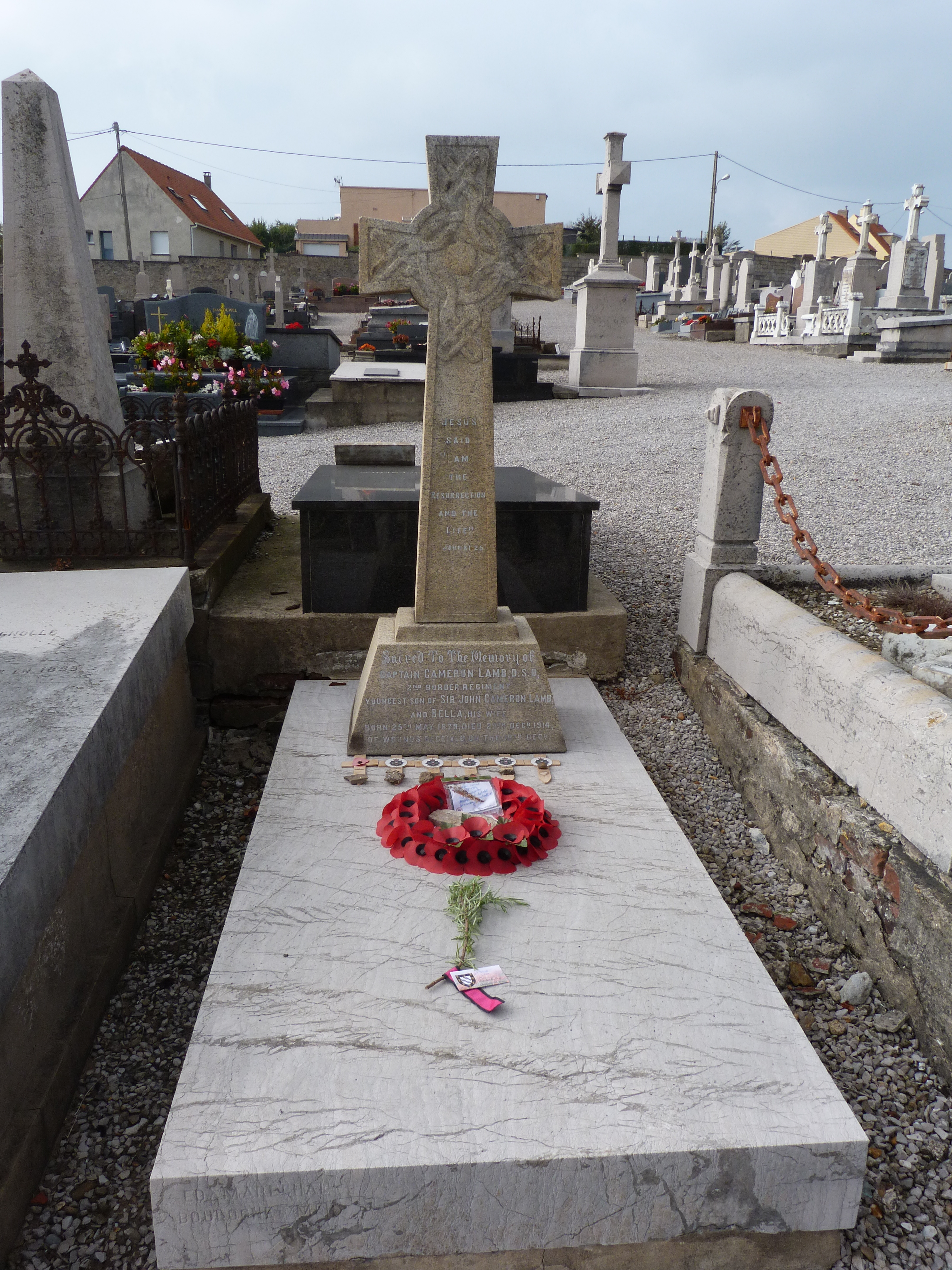 Although there is a Commonwealth cemetery in Wimereux, where the headstones are laid flat because of the sandy soil, Lamb is buried in the civic cemetery, and lies under a celtic cross with the words, “Jesus said, ‘I am the way, the truth, and the life.'” His father was Sir John Cameron Lamb CB, CMG, who amongst other things, wrote a book on life boats. He was a servant of the Empire, as was Cameron, who came up to Exeter in 1897, and after that was involved in Colonial administration. He was 35 when he died, on New Year’s Eve 1914. Lamb’s gravestone is different because his family erected it. He died only four months into the war; the government had no idea how long, how bloody, how awful the war would be, nor did it, at that point, realise the need for a uniformal, national commemoration. Only as deaths rose and the reality and brutality of trench warfare set in, did it become obvious that a war graves commission be set up. David Crane’s ‘Empires of the Dead’ provides a detailed account of the difficulties, and ultimate triumph of how to, with dignity and sympathy, honour the hundreds of thousand Commonwealth military who, through a sense of loyalty, patriotism, or, more likely, because of a sense of adventure or pressure, fought and died for our freedom.