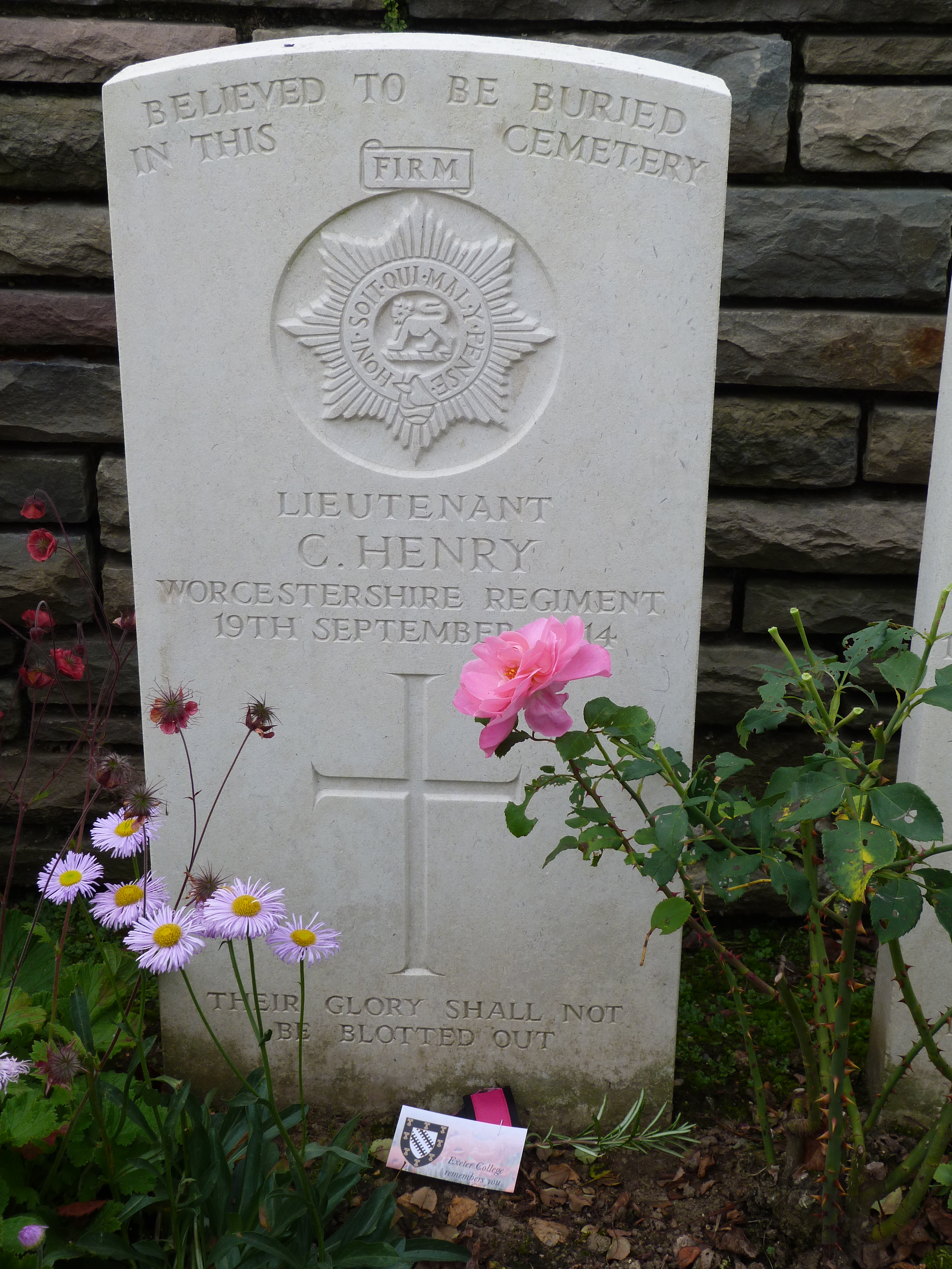 Claude Henry was 33 when he died on 19th September 1914 in action at Vailly sur Aisne. Although this battle – part of the larger offensive to stop the German invasion of Paris – was only 6 weeks into the war, its consequences were important in shaping the next four years. Neither side won [or lost] outright, and thus the Allies and Germans became entrenched to the north of the Aisne river, creating the trenches for which this war has become infamous. Claude Henry came up in 1900 to Exeter and must have played cricket for the College, as he’s recorded in Wisden as playing regimental cricket. Unfortunately not much else is known of him: he was from London and served in the 3rd Battalion the Worcestershire Regiment. His body is believed to be buried in the Vailly British Cemetery: this cemetery was re-ordered and augmented after the war when the bodies of Commonwealth soldiers were exhumed from smaller, town graveyards and gathered together.