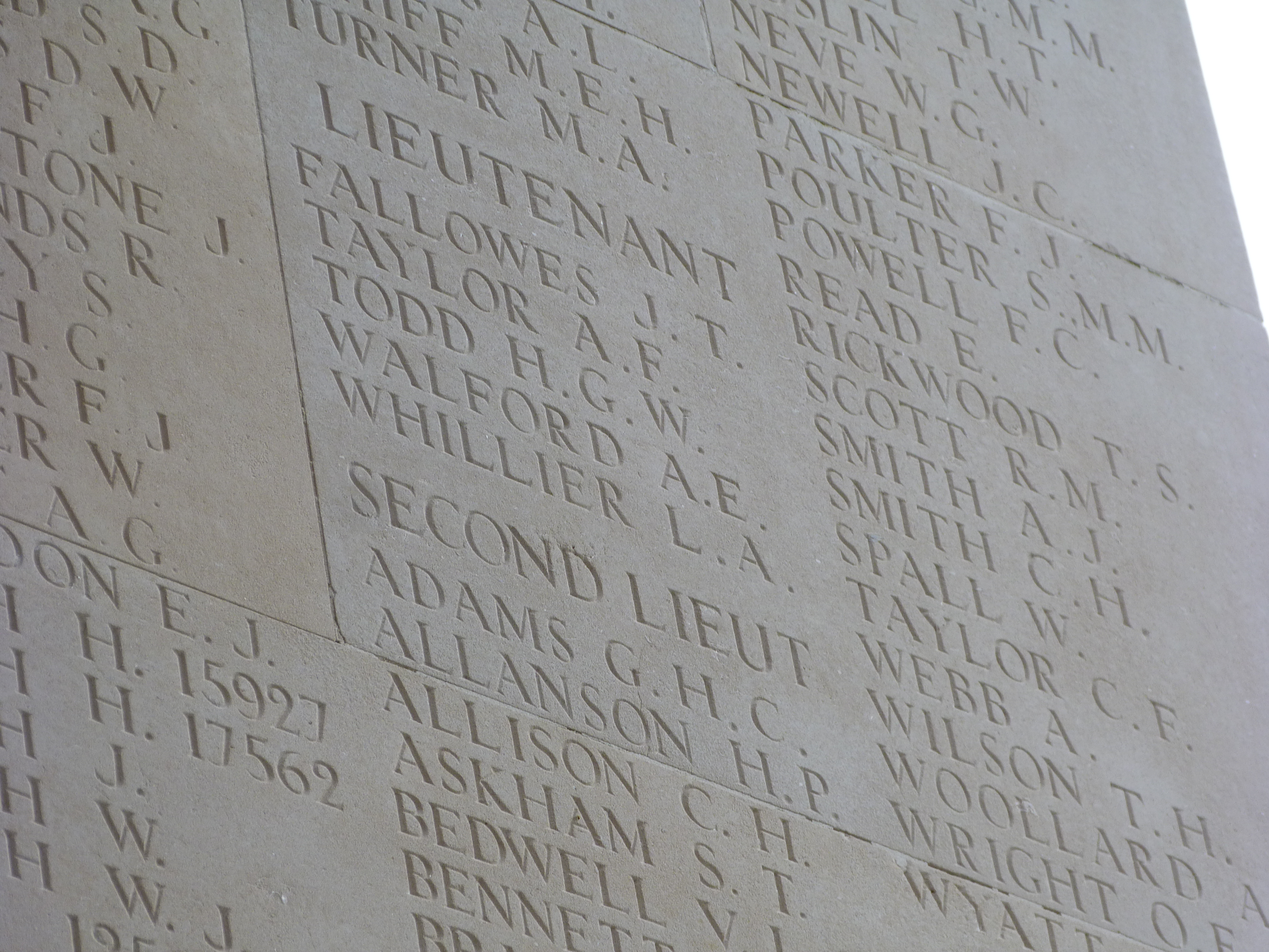 There is something wrong with society when we need to build a monument to commemorate the 72,000 Commonwealth and French soldiers . This statistic becomes worse when we realize these are only those whose bodies were not identified or recovered; many thousands more died in the battle of the Somme. We felt concerned that our visit today felt like ticking off a list of statistics: 21 Exonians, all of whom died within 10 square miles. The monument at Thievpal is quite surreal, and unlike the other graves. Well tended, but lacking the planting that involved the expertise of Gertrude Jekyll, its Lutyen designed arch draws unfortunate similarities with some of Albert Speer’s plans for Hitler’s Berlin – it just is too abstract and too similar to architectural themes Fascist governments used to be comforting. This is not to undermine the intentions of those who erected it, but the list upon list upon list of names without graves, without personal inscriptions or cap badges does reduce the lives of so many tens of thousands to a register. Almost all the Exonians on the memorial are either second or first lieutenants. 123 of Exeter’s 143 were either second, first lieutenants or captains. Many lost their lives in the terrible month of July 1916, the Battle of the Somme, when ten Exonians died. About half would have known J.R.R.Tolkein, who came up in 1911, and later survived the Battle of the Somme. Harry Allpass was a particular friend, a poet who took a first in Modern Languages, and also in his year were Robert Gordon as well as John Mackreth and Percy Robinson. The youngest Exonian at Thiepval, Ernest Tulloch, was a Rhodesian and Rhodes Scholar who matriculated in 1914.