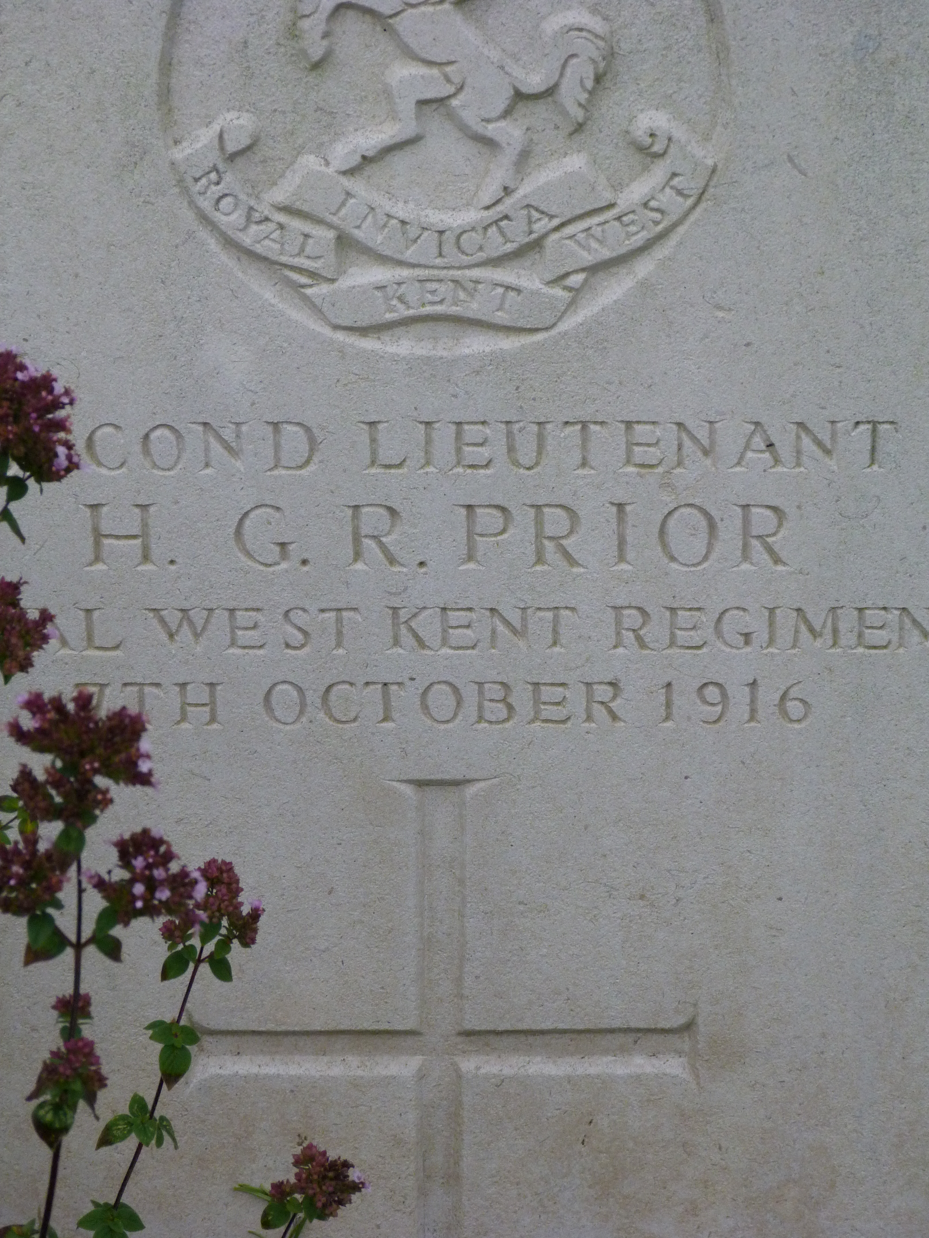 Prior enrolled in 1915, ten years after he matriculated. He was the only son of Colonel George Prior, and went to school at Wellington. His father served in the Colonial Army in India, and it is most unlikely that he saw action: after the Indian Mutiny there was relative calm and officers served in an administrative capacity. Warlencourt British Cemetery lies on the road between Albert and Bapaume, and thus right at the centre of the Front.