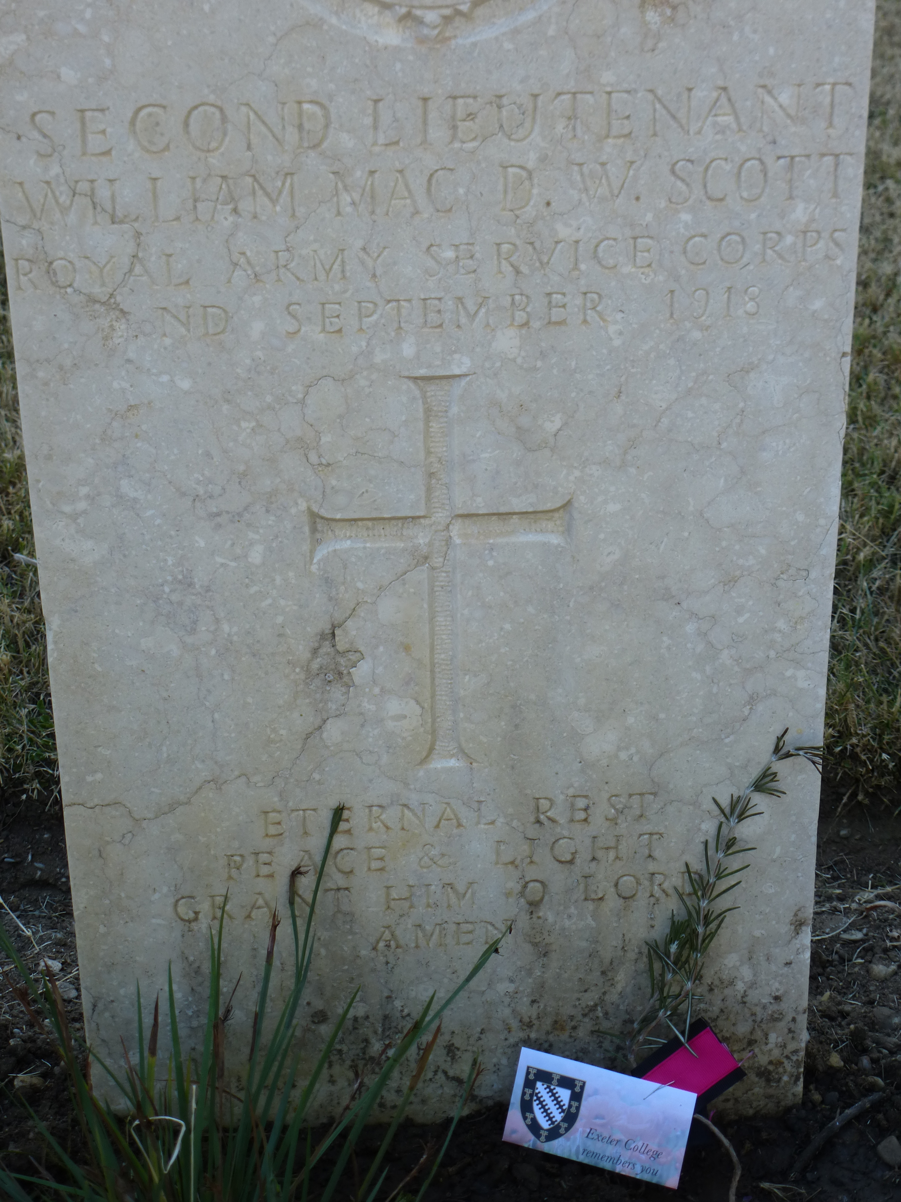 He had been born in Madras in 1878, the third son of Colonel William Scott of the Bombay Staff Corps, and educated at Sherborne. He matriculated in October 1898, but nothing is known of his career before the war. Like so many young Exeter men killed in the war, he was a 2nd Lieutenant. He seems likely to have died either at Arquata, just north of Genoa, or of wounds received there and in the military hospital at Bordighera.